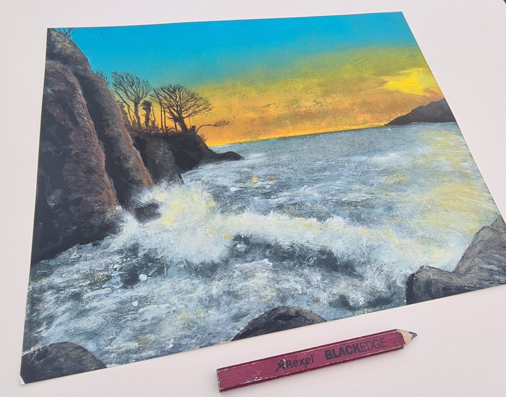 with Spring ’22 very much in the air, my Coves started to brighten up – although the pallette remains generally on the cold side (& the sea in particular!) the light in the first few weeks of March becomes noticably more intense very quickly. both this & ‘Sugary Cove VI’ were rendered from photos taken during a particularly vigorous Springtide!