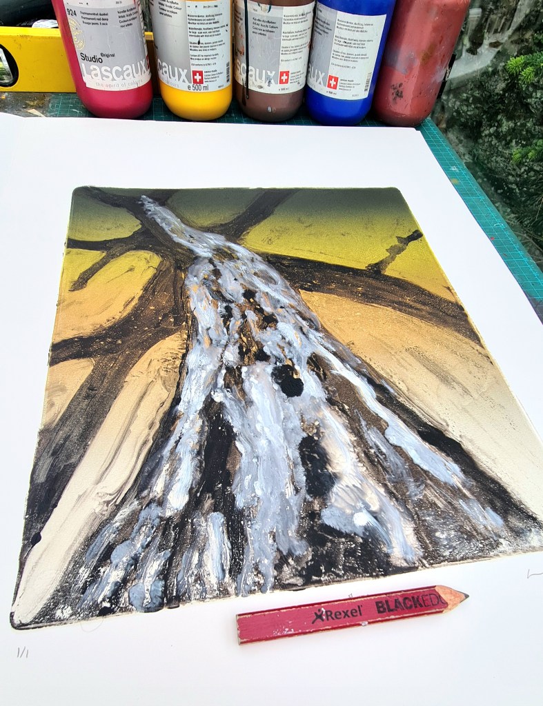 ‘Stump #170’ is a Gelliplate Monoprint on Daley Rowney Heavyweight Cartridge 220 gsm, 30cm x 35cm